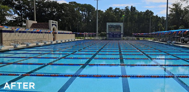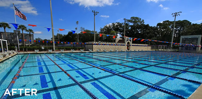 The Bolles Sharks have a tradition of developing swimmers; from learning how to swim to becoming Olympic Champions! The school needed their swimming pool to reflect the image of their elite swim team, and they knew to call on us at Tempool Inc. for their pool repair and remodel.